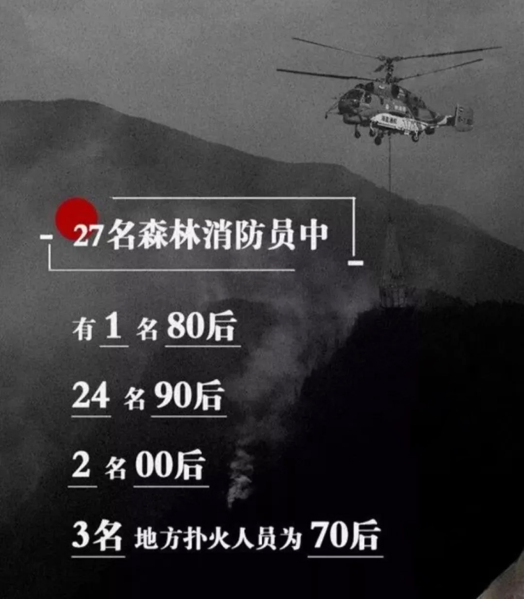 這是一場(chǎng)慘烈的“斗爭(zhēng)”,為了拯救人民財(cái)產(chǎn)、動(dòng)植物等的犧牲,這是一份沉重的名單,經(jīng)統(tǒng)計(jì)核實(shí),有27名同志系涼山州森林消防支隊(duì)指戰(zhàn)員。27人中有干部4人、消防員23人。漢族22人、滿族1人、黎族1人、彝族2人、畬族1人。1980年后出生1人,1990年后出生24人,2000年后出生2人,年齡最小為2000年7月出生。中共黨員9人(含預(yù)備黨員1人),共青團(tuán)員11人,青年7人。