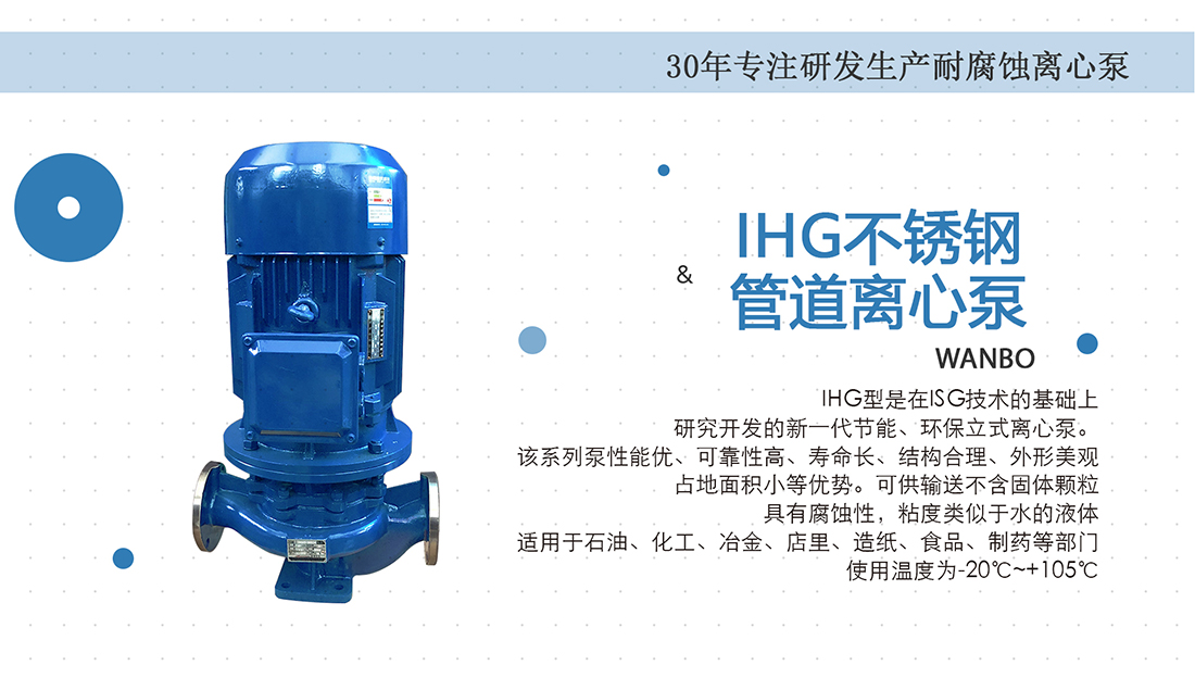 設計特點:泵為立式結構,出入口直徑相同,且位于同一中心線上。它可以像閥門一樣安裝在管道中。形狀緊湊美觀,占地面小,建筑投資低,如電機加上防護罩可置于戶外使用。軸封是機械密封,材料根據需求選定,使用壽命一般超過一年。易于安裝和維護,無需拆卸管道系統,只需拆下泵體支架螺母即可提取所有轉子部件。根據流量和揚程的要求,采用串、并聯運行方式。可根據管道布置的要求使用泵的垂直或水平安裝。用途:適用于輕紡、石油、化工、制藥、衛生、食品、煉油等工業輸送化學腐蝕性液體。流量范圍:3T/h-720T/h,揚程范圍:20m-150m,功率范圍:1.5kw-110kw,運行溫度:-20℃—105℃。可根據實際工況要求變更配置。